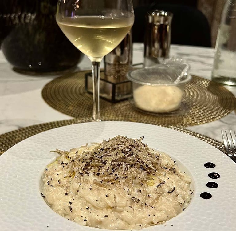Le risotto, ce plat vénitien devenu universel, est le terrain de jeu idéal pour accueillir la truffe. Ici, la truffe d’été (Tuber Aestivum) vient révéler toute la richesse du riz crémeux, soulignée par un soupçon de parmesan. À chaque cuillerée, on sent la douceur de l’Italie, les bois chauds, et cette irrésistible touche de luxe.
